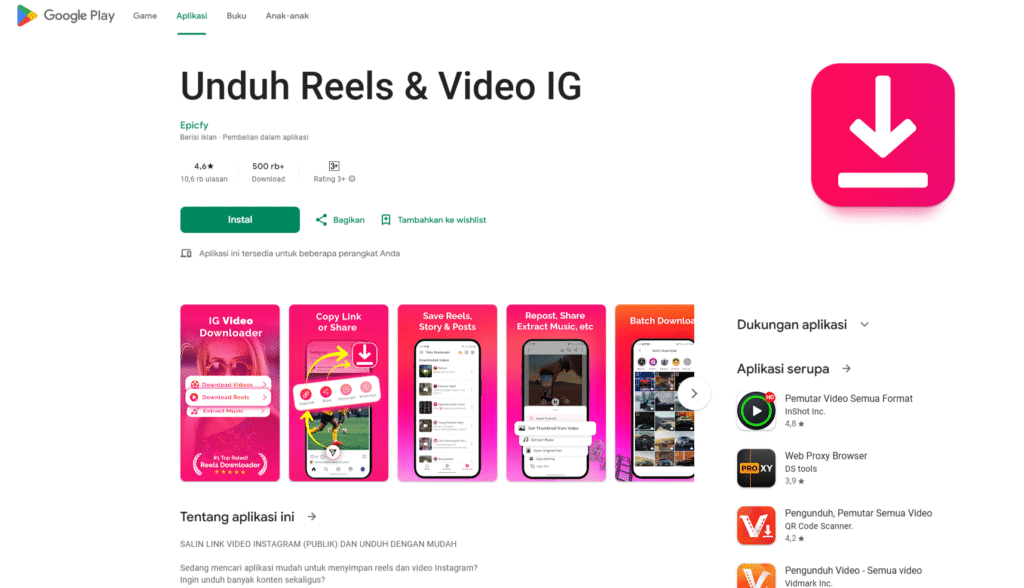- Unduh aplikasi Unduh Reels & Video IG di Google Play Store.